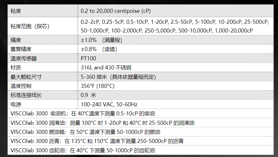 小樣品粘度計集成了一個電子加熱器和綜合的溫度控制系統(tǒng),可提供連續(xù)的粘度和溫度讀數(shù)可在12個20:1粘度范圍內(nèi)進行測量。粘度可顯示為CP或CST,溫度可顯示為°C或°F。集成溫度控制允許用戶在高于環(huán)境溫度至356°F(180°C)和高于環(huán)境溫度至-40°C的任意設置下進行測量,并配備可選的冷卻套。該傳感器易于現(xiàn)場校準。可以預先校準多個工作范圍和產(chǎn)品設置。數(shù)據(jù)可以通過RS-232串行端口輸出到PC,用于跟蹤、存儲或圖形顯示。電子設備允許用戶定義溫度和粘度顯示單位、數(shù)據(jù)平均間隔、密度等。電子設備還提供數(shù)字讀數(shù),以及樣本穩(wěn)定性的統(tǒng)計數(shù)據(jù),使測試和操作員之間具有更大的重復性。主要特征易于使用和維護 cP和cst的數(shù)字顯示 存儲多達40個特定于產(chǎn)品的測試設置 可拆卸的溫控循環(huán)套和蓋子增強功能 所需液體少于2ml,最大限度地減少產(chǎn)品浪費 需要少量的工作臺空間 便攜 內(nèi)部加熱器,用于溫度控制在40/50/100/135/150°C等各種條件高精度和可靠性 軟件多次測量樣品,直到標準偏差小于0.2%,然后根據(jù)ASTM D7483顯示粘度值適用范圍0.2至20000cP的粘度測量值標準方法符合ASTM D7483標準 相關于ASTM D445標準。